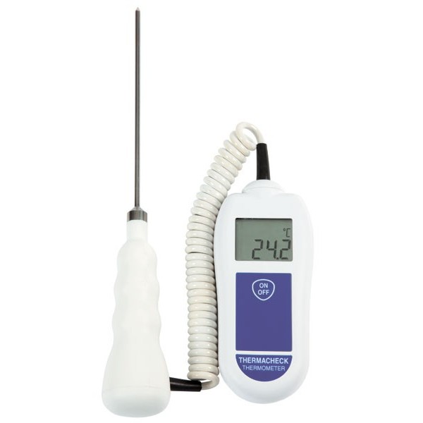 Le thermomètre à sonde ThermaCheck est un thermomètre de précision professionnel qui dispose d’une sonde de pénétration intégrée. La sonde de pénétration est reliée au boîtier via un câble ce qui permet une prise en main plus facile.